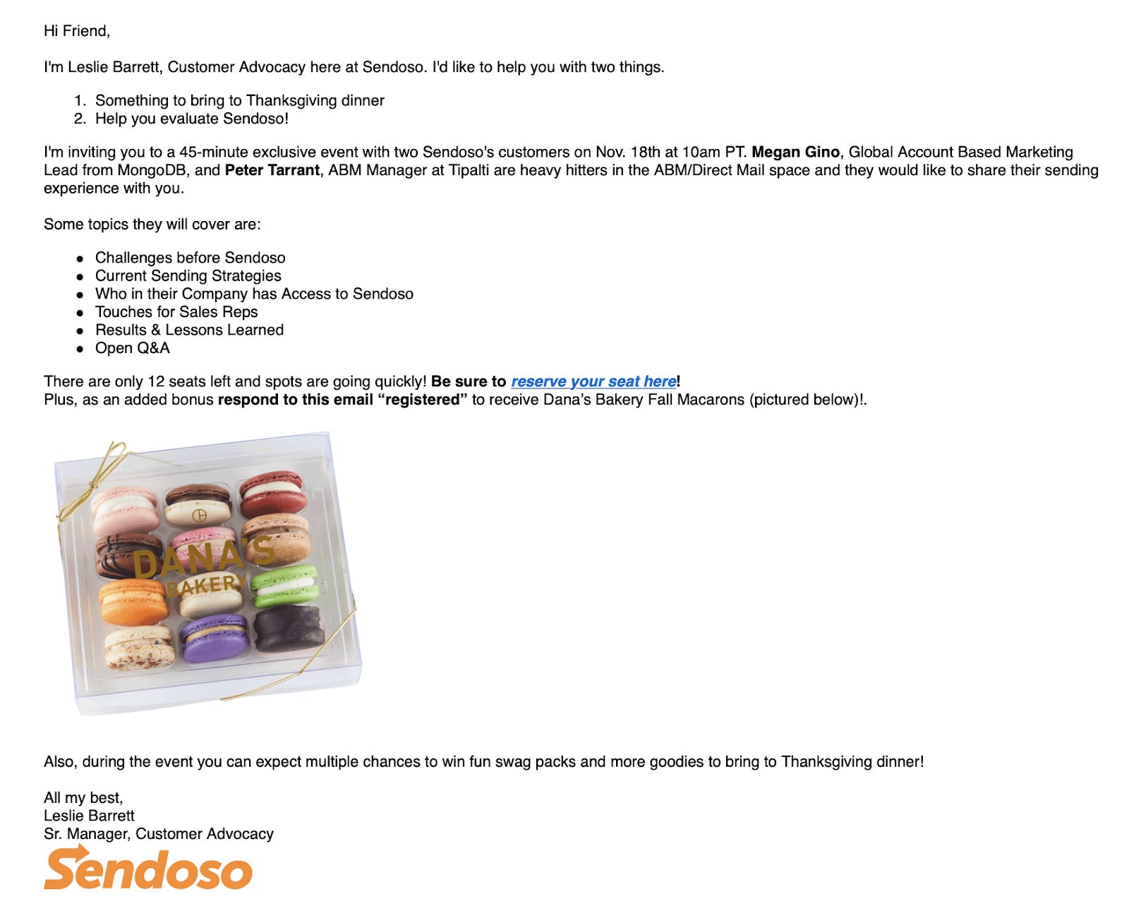 2 things: So yes we are Sendoso and they expect this from us but can you imagine the response you would get if they didn’t expect a treat. If you don’t have Sendoso then you can use GeorgeTown Cupcakes. They ship all over and they are DELICIOUS. They will ship in bulk for ya. Don’t send to Texas during summer time though.